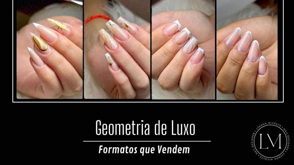 O curso 'Efeito F1' é perfeito para quem está começando do zero. Já os módulos de 'Geometria' , 'Nail Art' e 'Método Lyanna' são ideais para quem já atua e deseja elevar o nível do seu acabamento.
